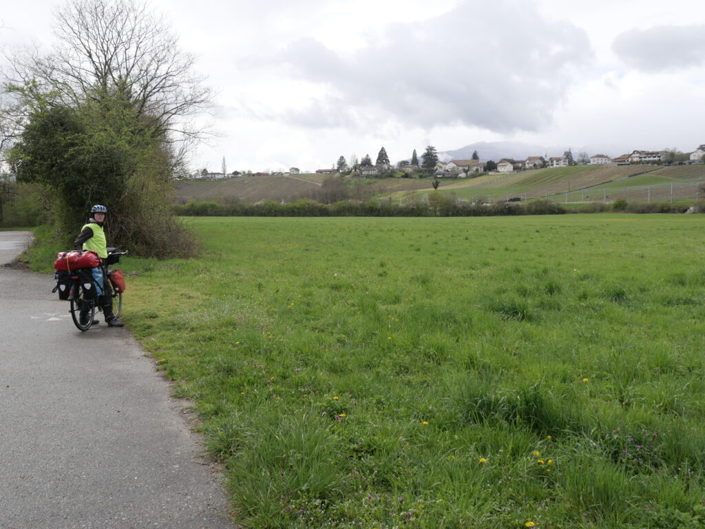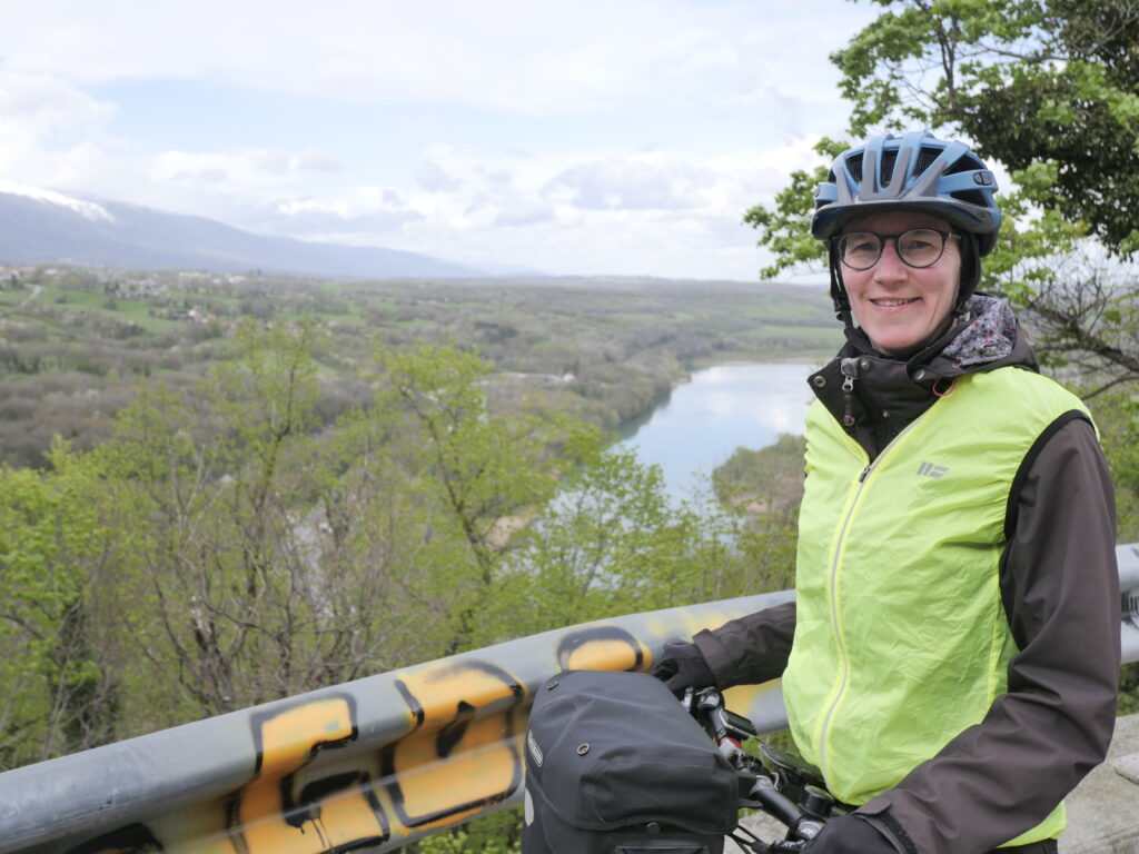 Bei Nieselregen hatten wir uns Genf etwas angesehen und noch einen bezahlbaren Kaffee gesucht, bevor wir Mittags, immer noch im Nieselregen, losgefahren sind, Richtung Frankreich. Schon bald kam aber auch die Sonne durch, was das Fahren sehr viel schöner macht. Der Radweg oder auch kleine Straßen führte uns aus Genf, immer wieder mit Blick auch die schneebedeckten Bergkuppen.
