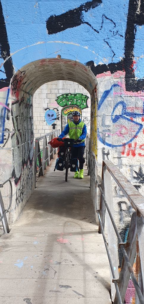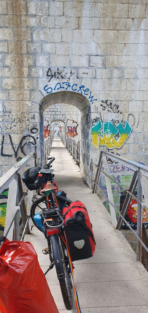 Weiter entlang der Rohne kamen wir auch durch ein schönes Naturschutzgebiet aus altarmen der Rhone und lautem Froschkonzert. Doch der Weg war plötzlich zuende und die einzige, und wohl auch vorgesehene Route führte uns unter einer Zugbrücke durch. Aber auch das haben wir gemeistert.