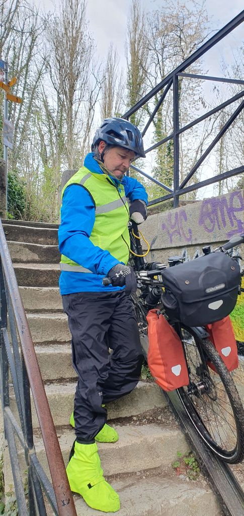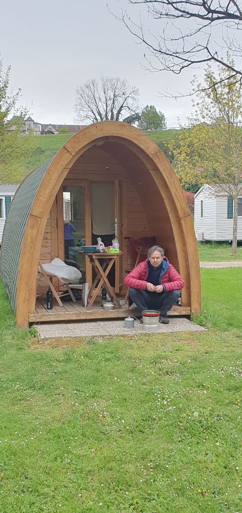 Da für die Nacht und eigentlich morgen den ganzen Tag Regen angesagt ist, haben wir uns wieder eine feste Unterkunft gesucht. Diesmal immerhin auf einem Campingplatz, wir nähern uns also an. Morgen sind wieder etwa 50 km geplant, wir besuchen Silkes Cousine bei Grenoble und werden uns dort dann trocknen.