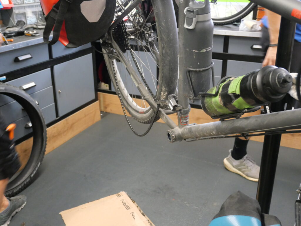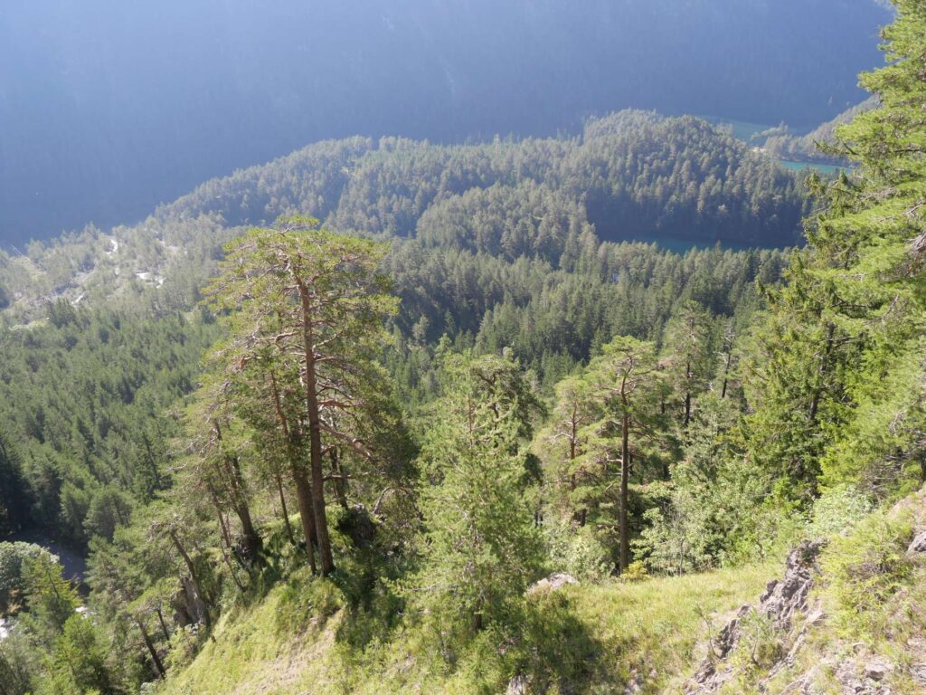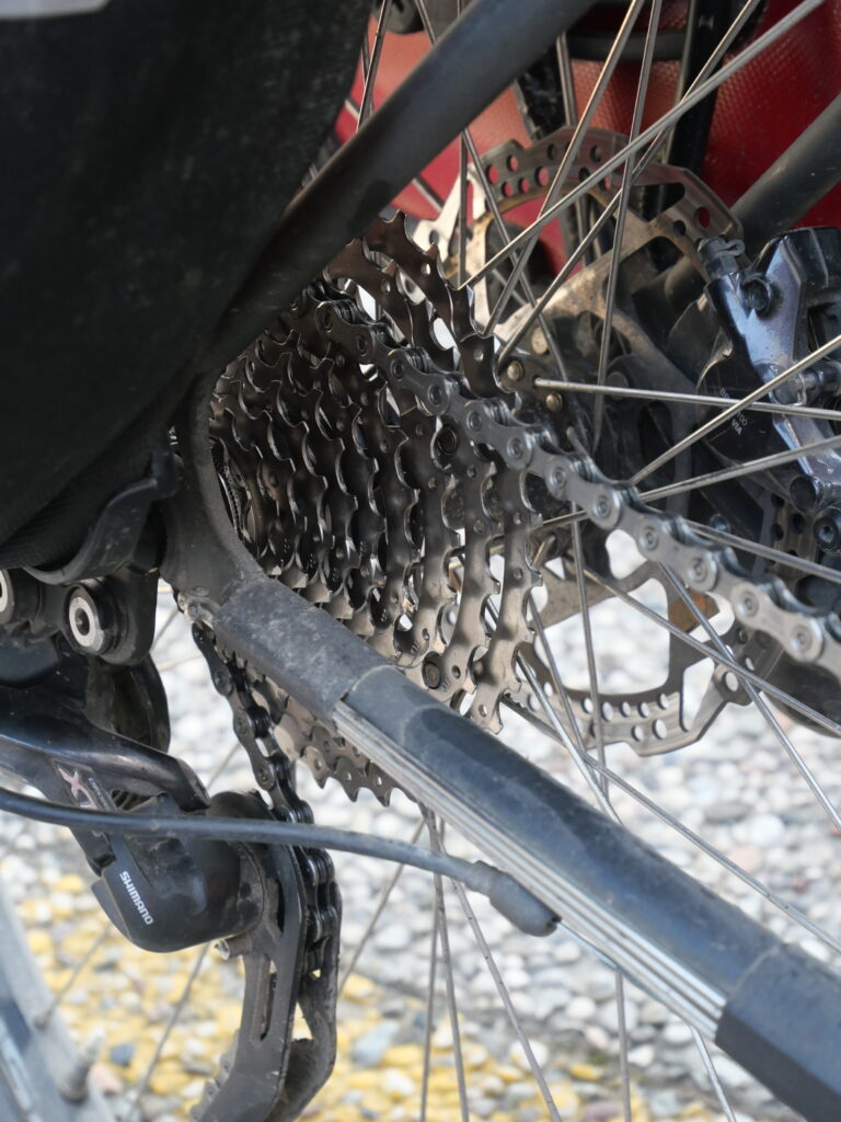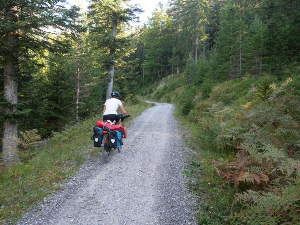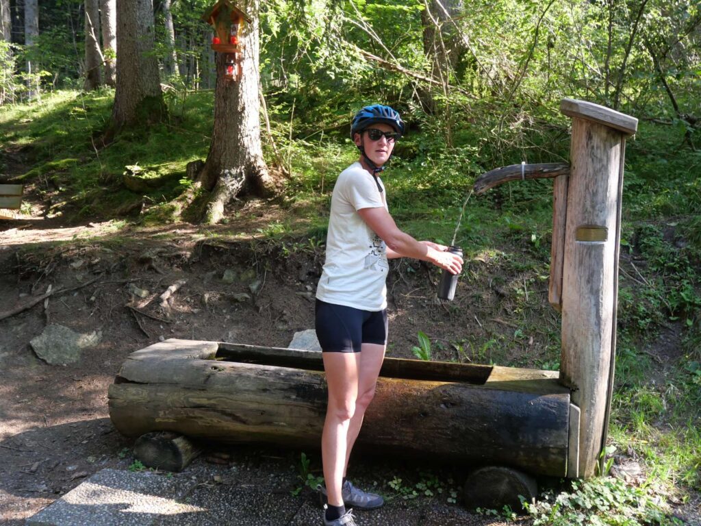 Nach Füssen kommt der erste Aufstieg und es war der schwierigste von der ganzen Alpenquerung. Wahrscheinlich, weil es sehr steile Anstiege gab und der Weg auch noch geschottert war und wir deswegen öfter mit dem Hinterrad durchdrehen. Wir mussten also auch schieben. Beim ersten Aufstieg offenbahrte sich auch ein technisches Problem: wenn ich auf dem zweiten vorderen Ritzel fuhr, trat ich immer wieder durch. Nicht gut und eine zusätzliche Erschwernis für den Aufstieg. Offensichtlich war das Ritzel recht weit abgefahren.