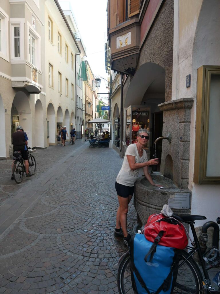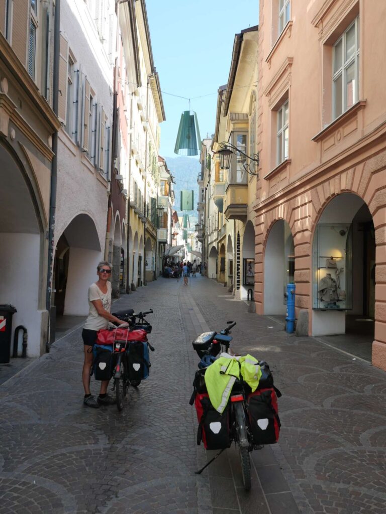 Nach der Pause folgen wir der Etsch weiter Talwärts, es ist ein sehr angenehmes fahren, da wir mit wenig Aufwand recht schnell voran, mit einem kurzen Stop in Meran, schauen uns die Laubengasse an und machen bei Vilpain für die Nacht halt.