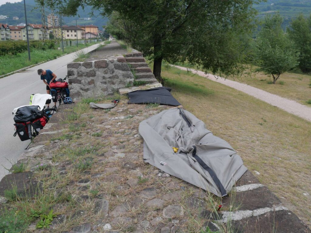 Nach einer wunderschönen Abfahrt durch das Brentatal sind wir inzwischen in Belsano del Grappa angekommen. Draußen regnet es wieder und ich fragte mich, wie es erst im Herbst werden wird. Nun, wir werden sehen.
