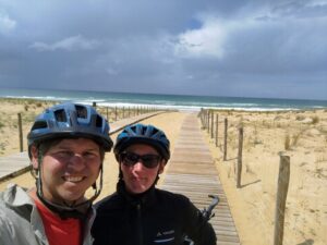 Also los ins Médoc wieder weg vom Atlantik, dafür aber nun die Gelegenheit in diese berühmte Weinregion zu kommen. Anfangs geht es wieder über alte Bahntrassen und wieder durch ein Gebiet, das wohl letztes Jahr gebrannt haben muss. Die verkohlten Bäume machen uns deutlich, wie riesig der Waldbrand gewesen sein muss und wie real der… - Âllo Atlantique